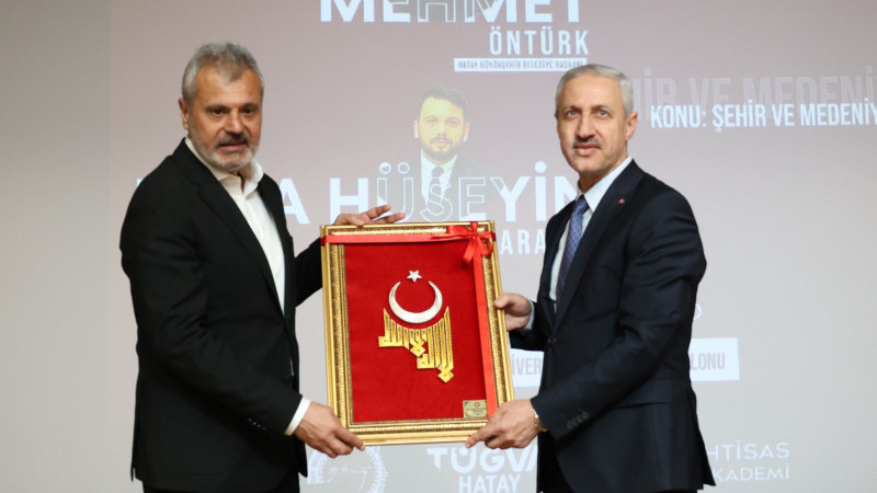 Hatay Büyükşehir Belediye Başkanı Mehmet Öntürk ve Gazeteci Taha Hüseyin Karagöz, Hatay Mustafa Kemal Üniversitesi (HMKÜ) ile Türkiye Gençlik Vakfı (TÜGVA) iş birliğiyle düzenlenen İhtisas Akademi programında "Şehir ve Medeniyet" konulu söyleşide gençlerle bir araya geldi.