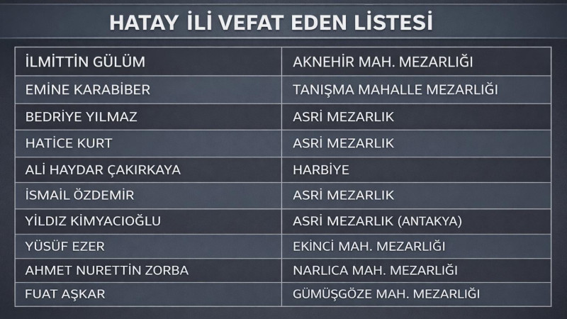 25.01.2026 TARİHİ VEFAT LİSTESİ