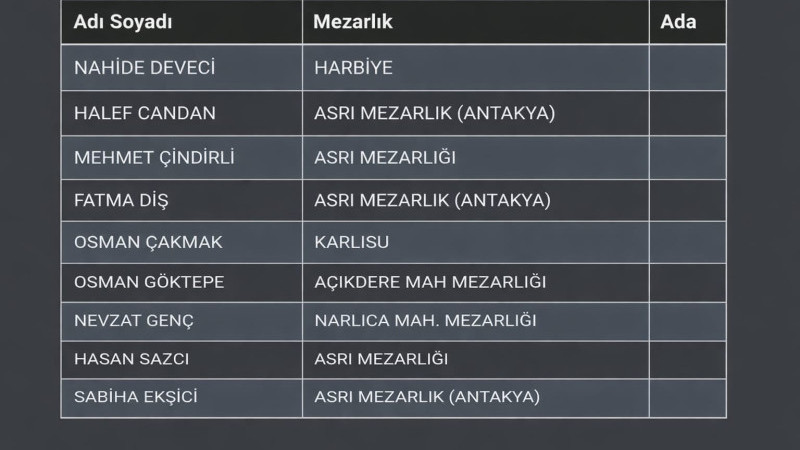 03.02.2026 Hatay da vefat eden vatandaşlarımızın listesi