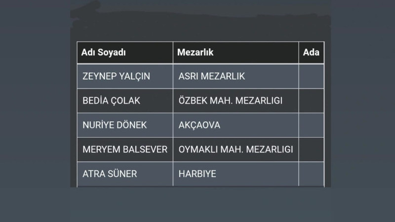 17.02.2026 HATAY DA VEFAT EDEN VATANDAŞLARIMIZIN LİSTESİ
