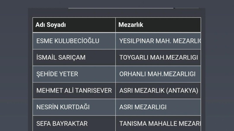 22.02.2026 Hatay vefat eden vatandaşların listesi