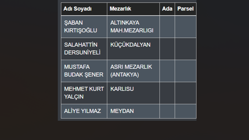 27.02.2026 Hatay da vefat eden vatandaşlarımız
