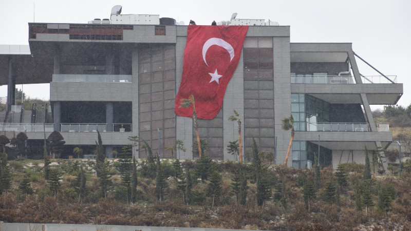 Hatay Büyükşehir Belediyesi (HBB), Türk bayrağına yönelik gerçekleştirilen provokatif eylemi kınamak amacıyla belediye binalarına devasa Türk bayrakları astı.