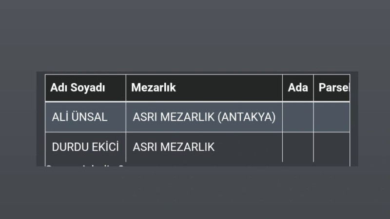 22.04.2026 HATAY DA VEFAT EDEN VATANDAŞALARIMIZ