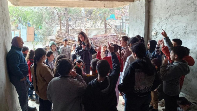 Hatay’ın Defne ilçesine bağlı Harbiye Mahallesi’nde iki gönüllü kadın, çocukların yüzünü güldürmek için anlamlı bir etkinliğe imza attı.